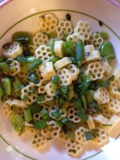 I will post the raspberry scone recipe another day, but tonight it was pasta and fava beans. I have never cooked fava beans before so it was part recipe reading and part experimenting with what I know we like. The result was a tasty, satisfying dish that I would definitely make whenever I have access to fresh fava beans.
