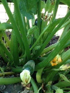 The zucchini plants seem to be past their early issues and are producing nice fruits now. Arielle made zucchini bread this morning and I will make a zucchini frittata for dinner. Even the plants I tossed into the old compost pile are bearing – see pics: