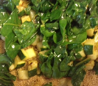 Place couscous in a large bowl and add the cooked chard and zucchini.