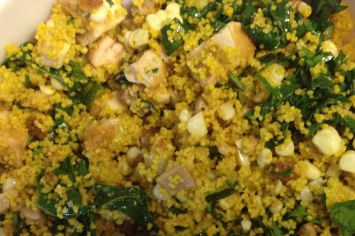 Zucchini, Swiss Chard, Corn & Chicken Saffron Couscous