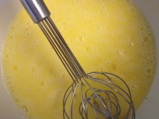 In a large bowl, beat eggs until light and fluffy.