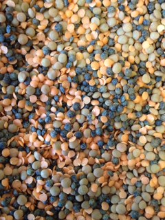 We have a large supply of cumin seeds (why, I do not know, they came with my husband); it is very nice, I grind all my own cumin. But although I had plenty of cumin, I did not have enough brown lentils to make the chili, so I used a mix of brown, red and green. It added a little more texture since the green stayed firmer than the rest. I also opted to omit the rice and serve it with dollops of plain yogurt – very nice.