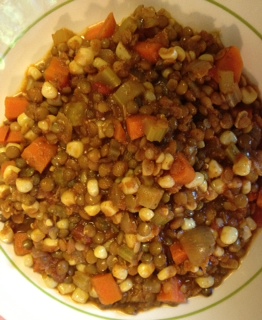 In honor of my going to see a taping of “The Chew” (I will in the entry when this post goes up), I made a adaptation of Mario Batali’s Corn Lentil Chili.
