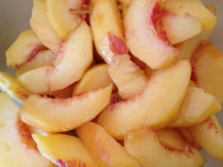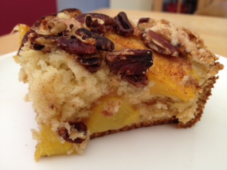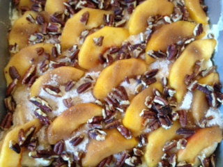 This recipe is Ina Garten’s, from the Food Network’s website. It uses sour cream in the batter, and tops the cake with chopped pecans along with the peaches. Yum! Again, since I did not change her recipe at all, I am linking to it, so if the pictures below entice you to make it, just click HERE for the recipe. Bake and enjoy!