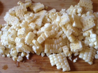 Cut the corn from the cob (see the tube-pan technique in my Freezing Corn post).