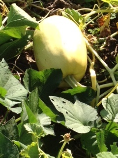 Spaghetti squash were the first of my winter squashed to be ready for harvest. This is the first year I grew them and was surprised by how early they were ready. The first picture was about a month ago, before it was ripe. I just wanted to show how cheery they were in the garden, like little (or big) balls of sunshine.