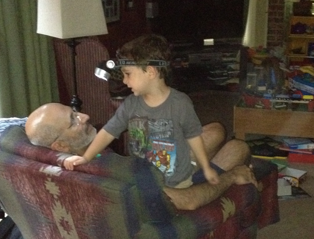 It was an exciting night for cooking, and a good thing I planned a dinner that could all be done on the stove top. Just as I was salting the eggplant and boiling the water to blanch the tomatoes, a storm blew through and we lost power for the next 2 hours. Because of the storm clouds, the sky became very dark. So it was an evening to cook (and play) via lantern and candlelight. Cam made the most of it – wearing the headlamp and cooking his own dinner via lamplight (check out the upcoming Cammy’s Scrambled Eggs).