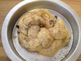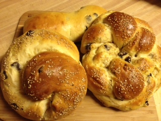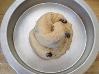 Place the loaves on greased baking sheets or in 9″round pans. The cinnamon raisin loaf can go in a loaf pan. Cover with a tower and let rise another 30 minutes, until it doubles in size.