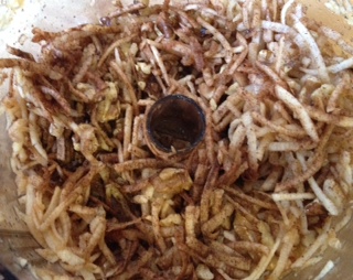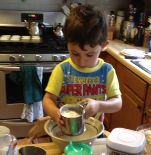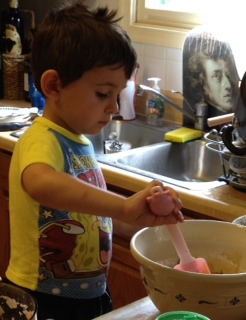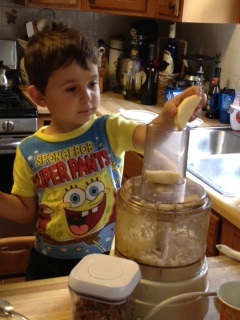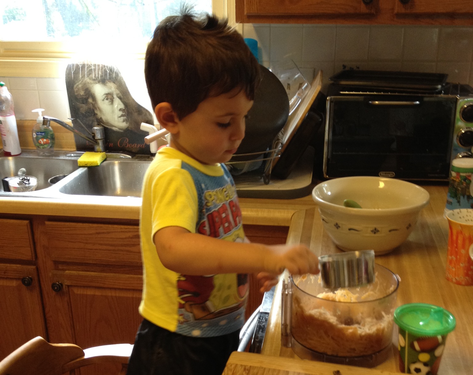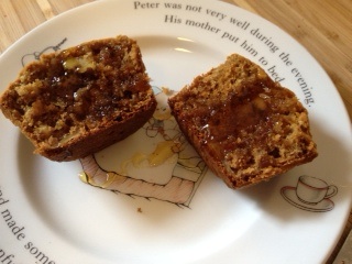 For Cammy’s contribution to our Rosh Hashanah celebration, he made the apple cupcakes from Joan Nathan’s The Children’s Jewish Holiday Kitchen. We call them muffins because they seem better to us as a breakfast treat rather than as a dessert. The warm spices evoke thoughts of the oncoming fall. They are best drizzled with honey, but go well with a little butter or cream cheese as well.