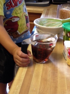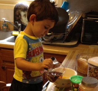 If you make the same mistake we did, transfer the eggs, honey and oil to a large bowl.