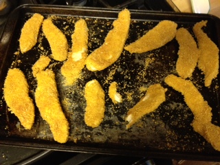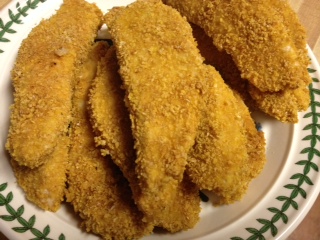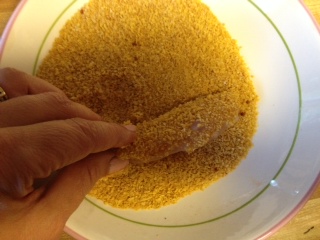 I needed cornflake crumbs for a dish a while back and have been rediscovering uses for it since. It is a memory from my childhood. My mother did not use cornmeal, but just like most New York Jewish mothers, her breading of choice was cornflake crumbs. So to me, these chicken tenders, remind me of my mother’s chicken cutlets – with a few important differences…