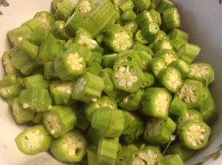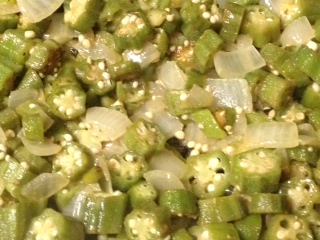 The okra can either be sliced length-wise or into rounds. I have done it both ways, but today I did rounds.