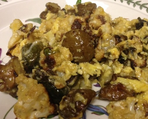 Roasted Vegetable Scrambled Omelet (Jerusalem Artichokes, Cauliflower & Brussels Sprouts)
