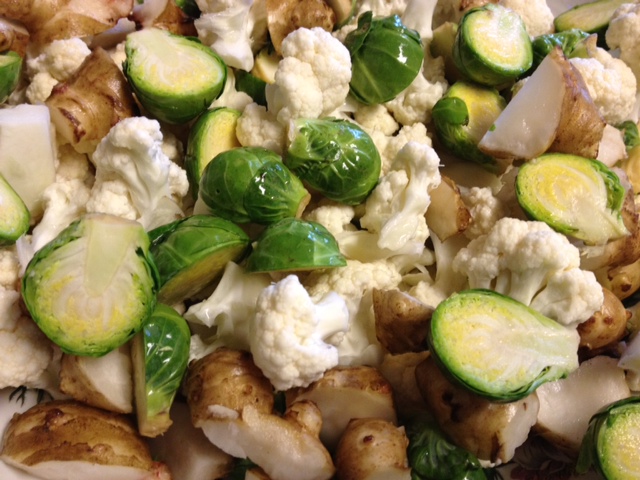 Roasted Vegetable Scrambled Omelet (Jerusalem Artichokes, Cauliflower & Brussels Sprouts)