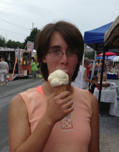 Now, just because we no longer are peach empire doesn’t mean we can’t still celebrate the peach. We spent a pleasant morning at the Wyoming Peach Festival before I made my tart. The star of the festival is always the peach ice cream! (Of course Arielle had to make a goofy face at me whenI wanted to take a picture)