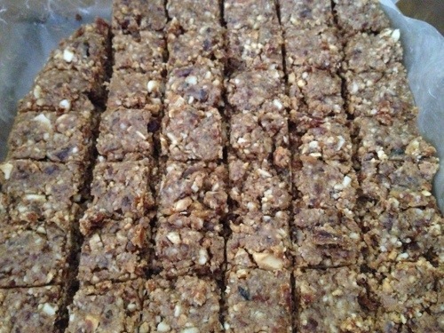 I made them into nugget-size chunks, that would be about the right amount for when I needed an energy infusion. I was initially nervous that the almond butter would make me thirsty, but I really hasn’t. They have been working great for me both before and during runs, no stomach upset and just enough energy boost. And, they taste really good.
