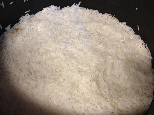 3 cups basmati rice, rinsed and soaked in water for 1 hour, then drained)