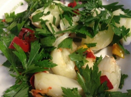 Mix the garlic, chile and parsley in a small bowl. Set aside.