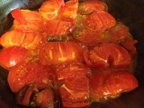 Turn the tomatoes over onto a serving plate. Pour over the juices from the pan.