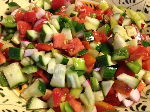 Mix the vegetables in a large serving dish.