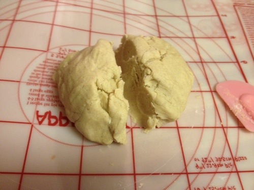 Reduce speed to low, add the flour mixture, and beat until the dough comes together. Turn out onto a lightly floured surface and divide in half.