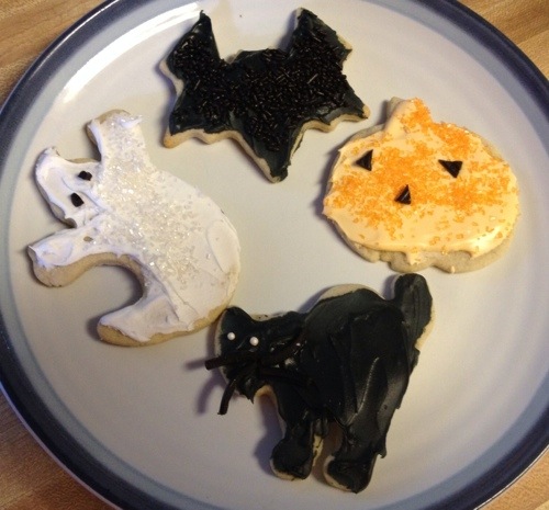 The biggest challenge was finding black food coloring for the cats and bats. It was also hard for me to give up total control of the decorating. But he had a great time deciding where to put the cats whiskers…