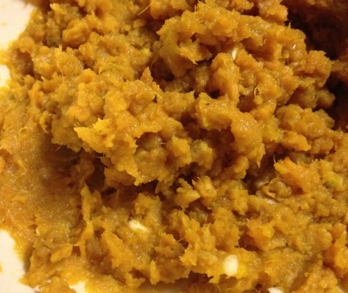 Since I was mashing the sweet potato, this was a good recipe to use some of the “ugly” odd sized sweet potatoes.