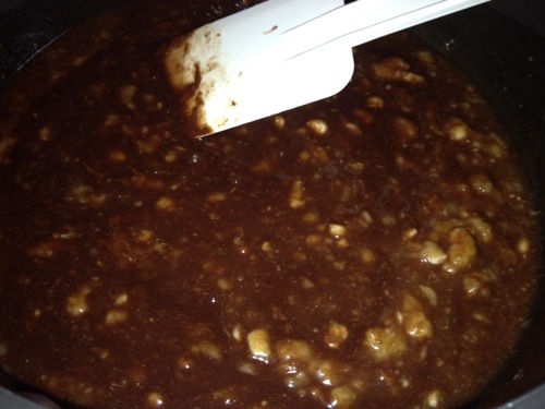 Stir the Nutella mix into the dry ingredients. Stir until the oats are all well moistened.
