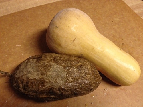 1 small butternut squash, about 1 1/2 lb, cut into large dice, about 1” x 1/2” (from the garden)
