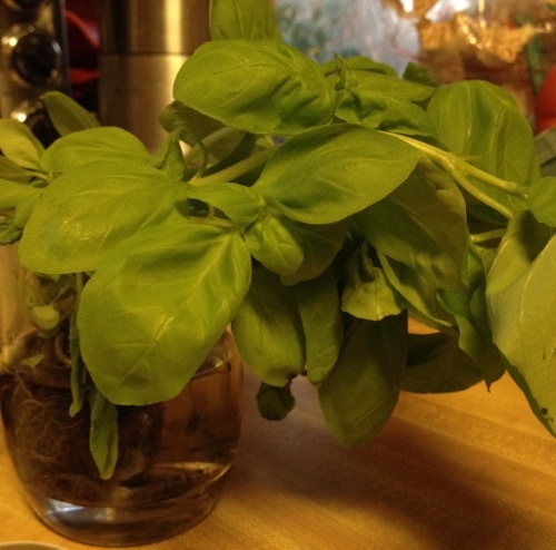 1 cup lightly packed fresh basil leaves (kitchen grown)