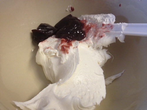 So today, instead of hearts, we cut animals in the tops of some cupcakes, but left most of the tops whole. Since the cupcakes are made from a boxed mix, the highlight of the cupcakes is the raspberry frosting – a combination of white frosting and raspberry jam.