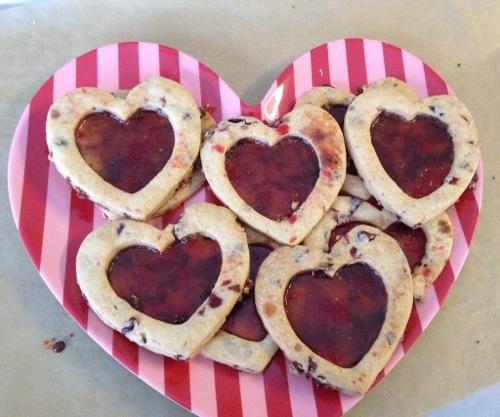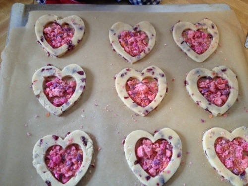 Without any more candy, I decided to use the remaining dough to make some little solid hearts. That would also work well if any of the kids didn’t want the candy-filled cookies.