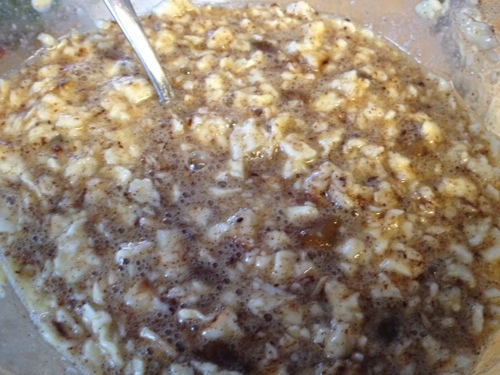 Add beaten eggs into the bowl of farfel and let stand 10 minutes.