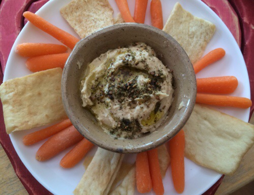 I am still missing the flavors of Israel and simply adding a touch of good olive oil and a sprinkling of za’atar makes all the difference. The hummus becomes a flavor treat.
