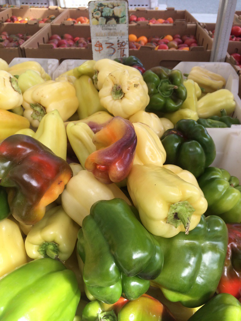 While my husband was busy, I spent my alone-time at the Sebastopol Farmers Market. What a selection of organic produce! I was quite content among the tomatoes, pluots, dates, almonds, olives and more!