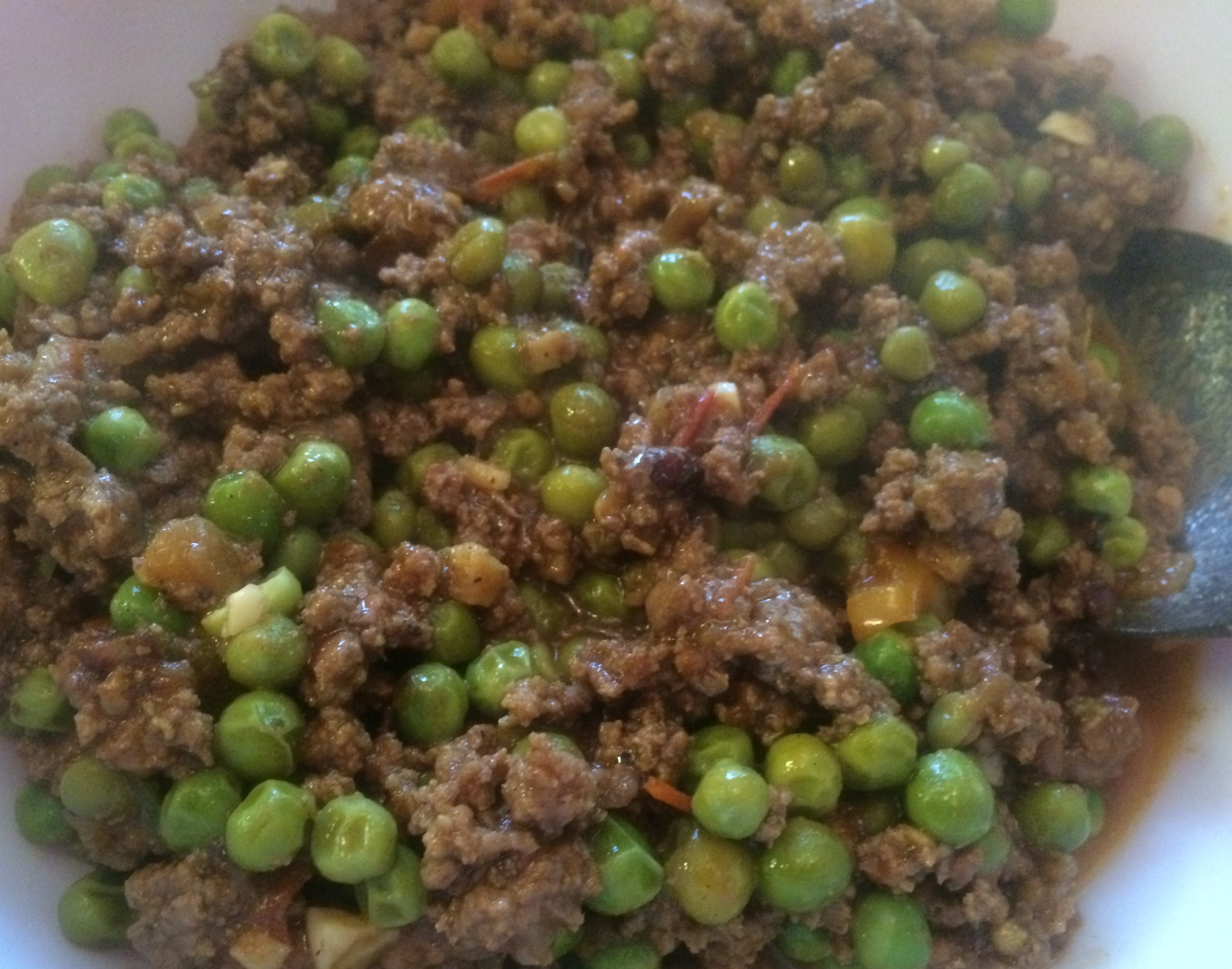 Adapted from Padma Lakshmi http://www.cookingchanneltv.com/recipes/keema-indian-spiced-ground-veal-and-beef-with-peas.html