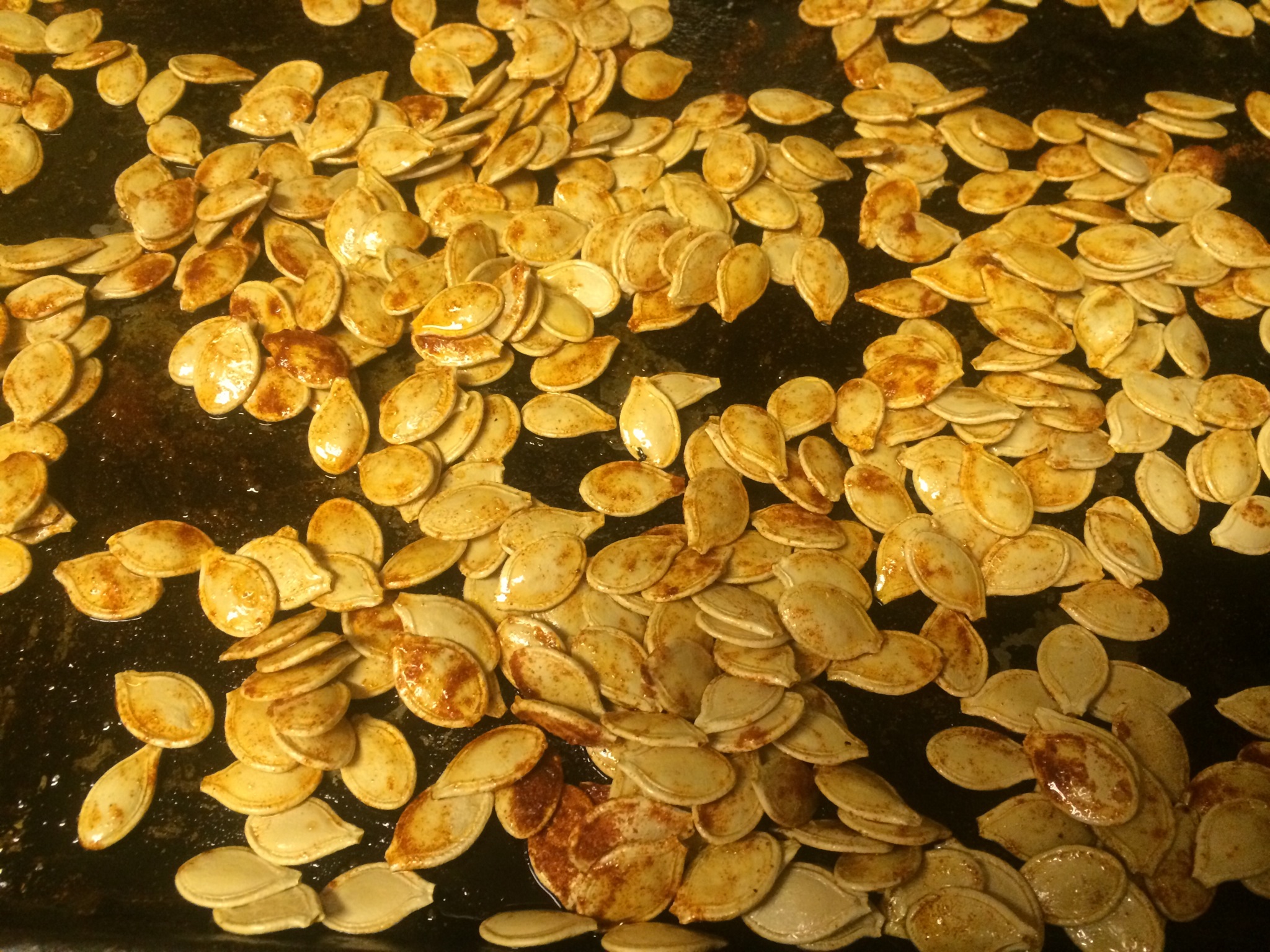 Toss the seeds with canola oil. Sprinkle with the spices and salt.