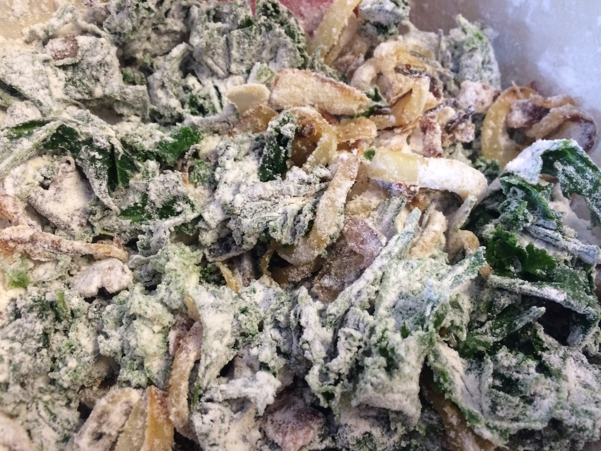 In the same skillet, add the remaining olive oil over medium-low heat.  Caramelize the onion and bacon, about 30 minutes, stirring occasionally.IMG_8653.JPGMeanwhile, whisk together the yogurt, canola oil and eggs.  IMG_8650.JPGIn a separate bowl, whisk together the dry ingredients.IMG_8651.JPGAdd the kale, onions and bacon to the dry ingredients and stir to coat.IMG_8654.JPGFold the wet ingredients into the dry.IMG_8655.JPGTransfer to a loaf pan. IMG_8656.JPGCook for 40-50 minutes until a toothpick comes out clean.IMG_8657.JPGLet cool for 1 hour in the pan. then remove to a wire rack and cool completely.  Enjoy!IMG_8662