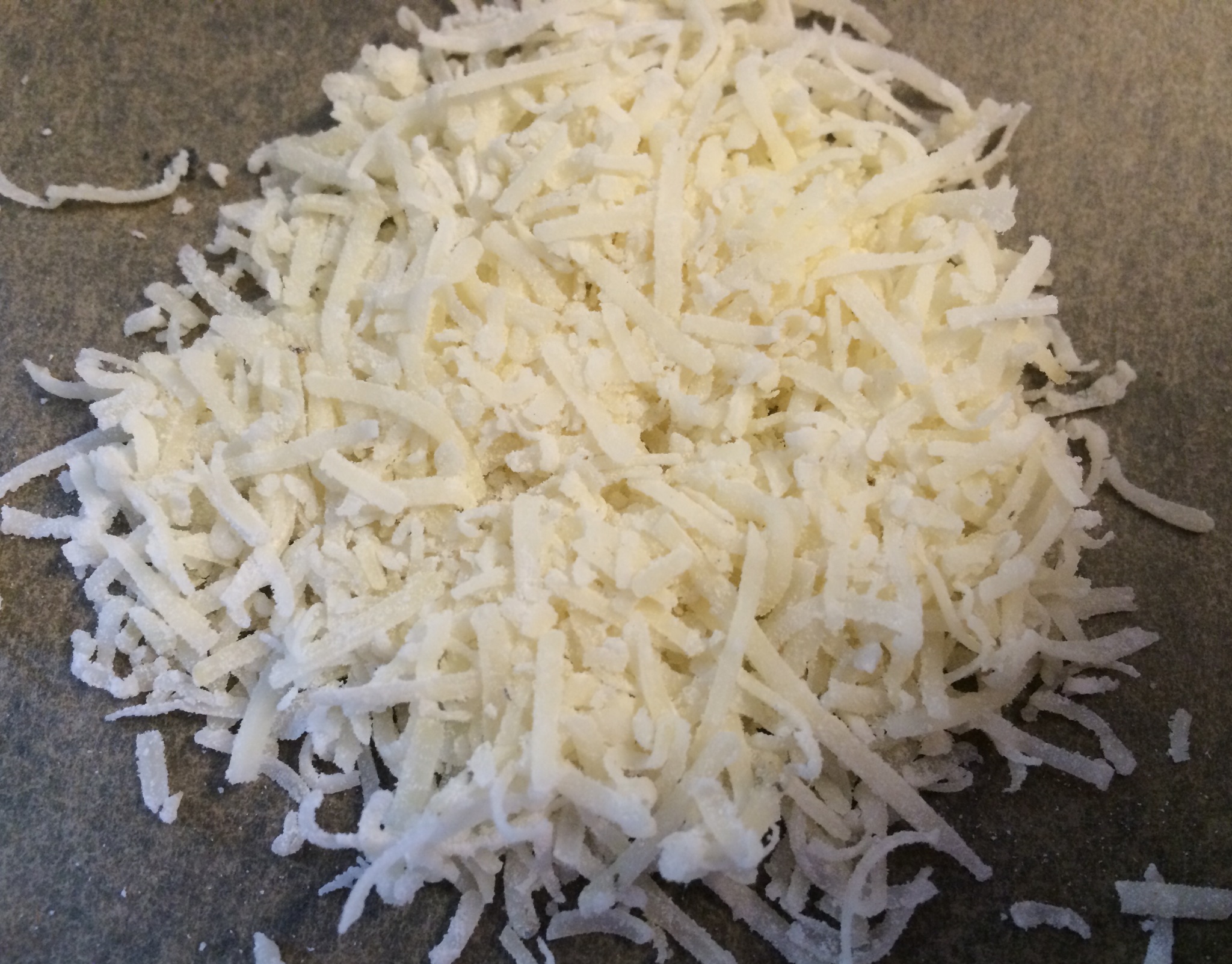 Most of the time you see recipes for parmesan crisps, but I was wondering, what about Asiago crisps. I love a good Asiago. So I grated some Asiago, mixed it with a little flour and baked it.