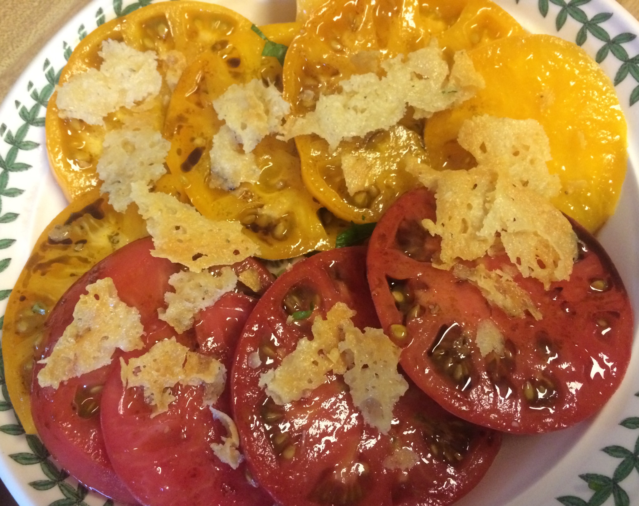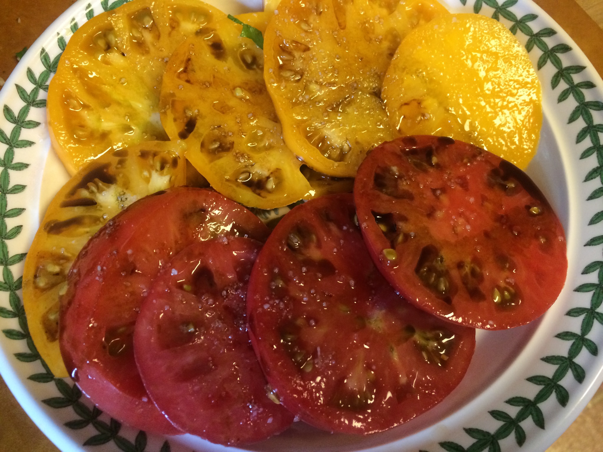 2 large heirloom tomatoes, sliced 1/2-inch thick (from the garden)