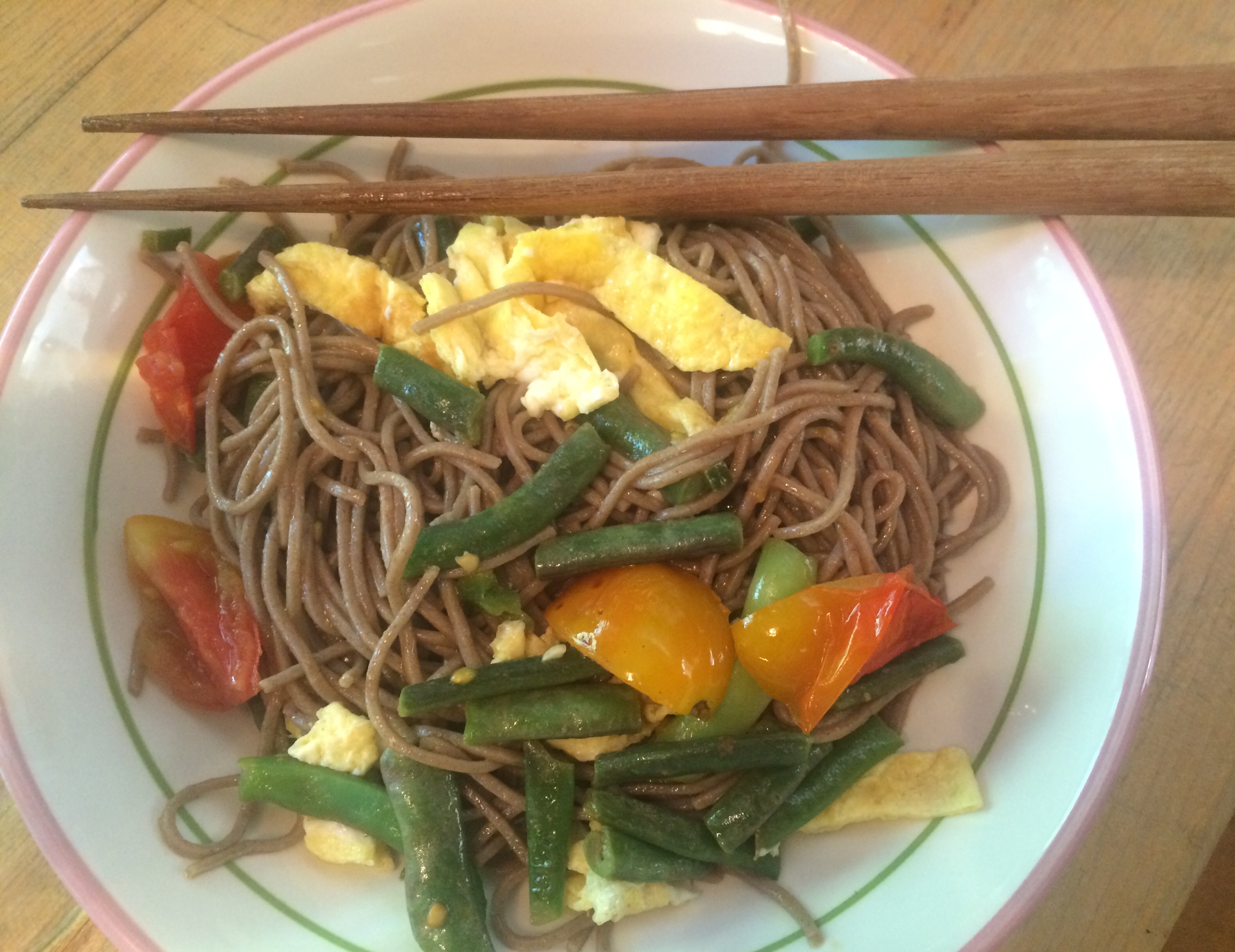 Stir-Fry Soba Noodles with Green Beans, Tomatoes & Eggs
