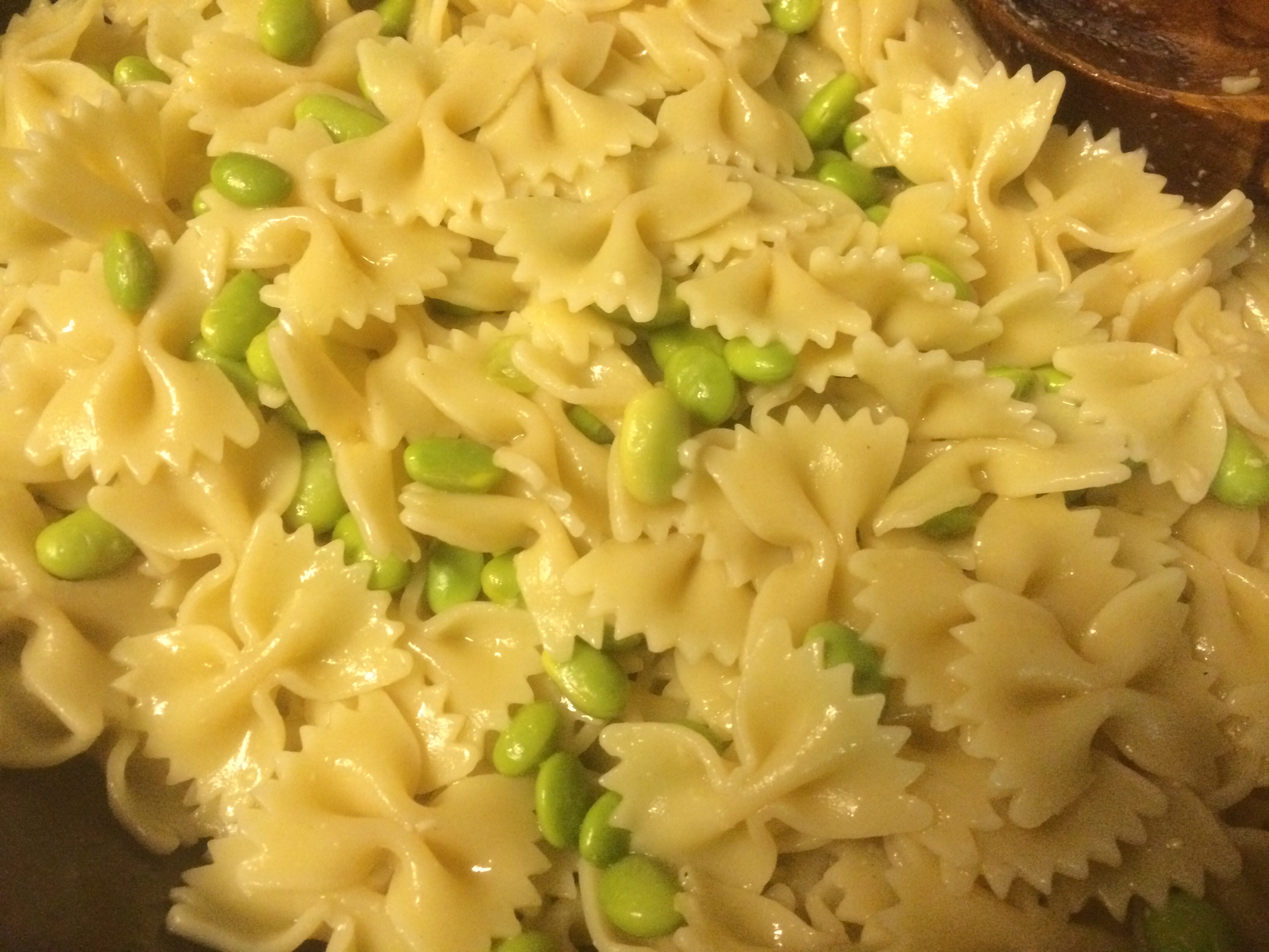 Add the edamame and farfalle to the lemon mixture, and toss well to coat.