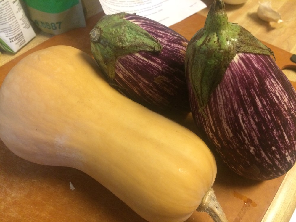 We picked up some eggplants and some delicious salad dressing that his wife made. I used a could of the eggplants with a butternut squash from my garden in a moroccan stew (tagine).