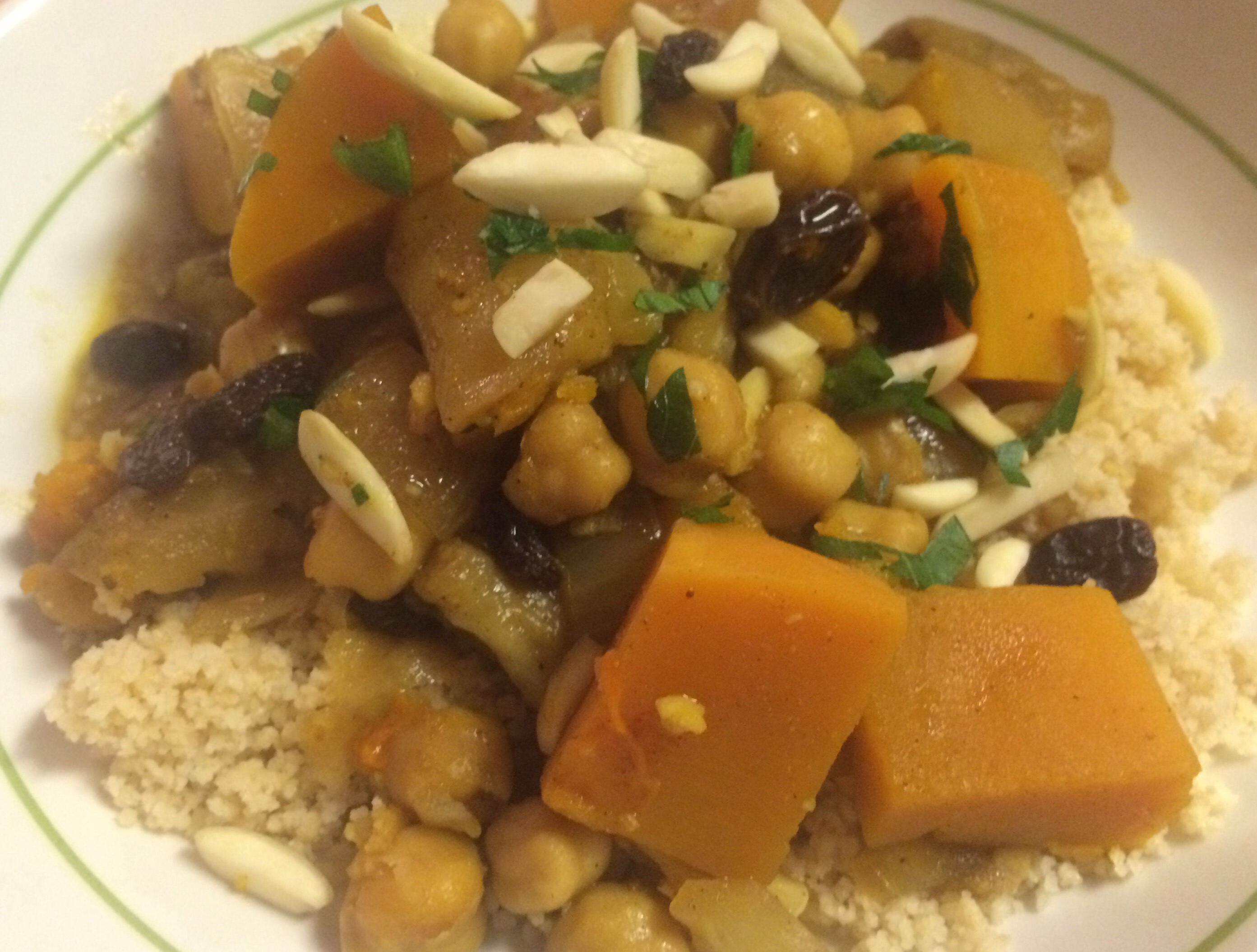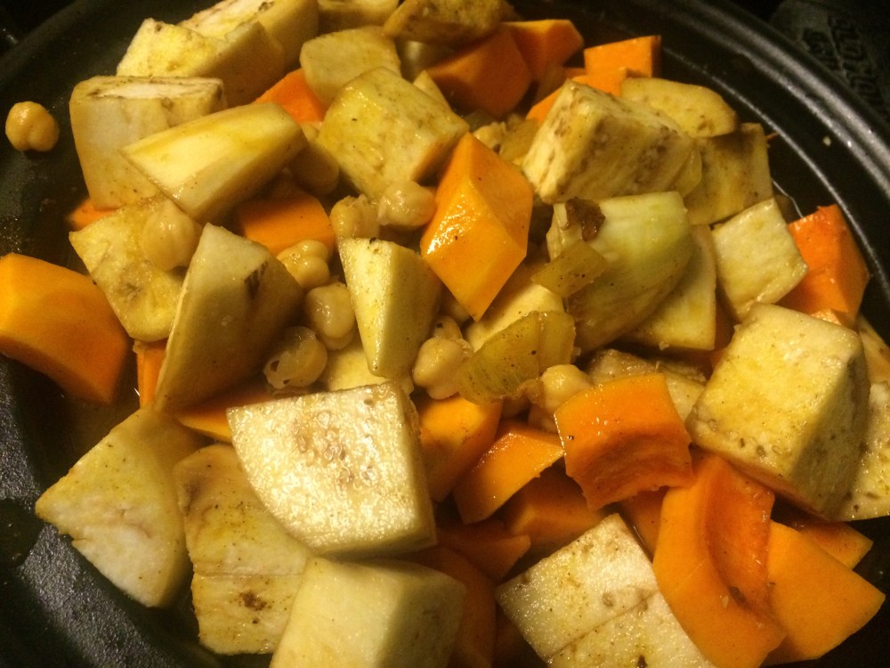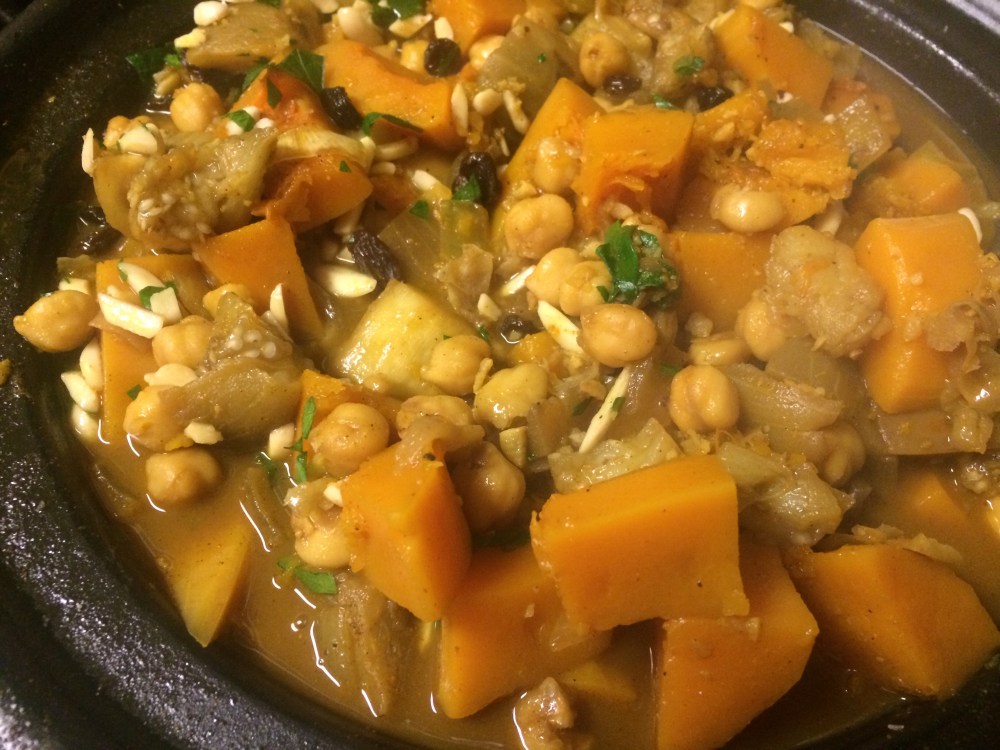 Eggplant and Butternut Squash Tagine with Chickpeas and Raisins