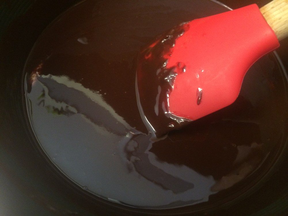 While the brownies are cooling, make the ganache. Combine the ingredients in a double boiler or in a microwave safe bowl.Melt together and combine. Pour the ganache over the top of the brownies and spread gently. Place in the refrigerator until the ganache is set. Cut into 30 servings and Enjoy!