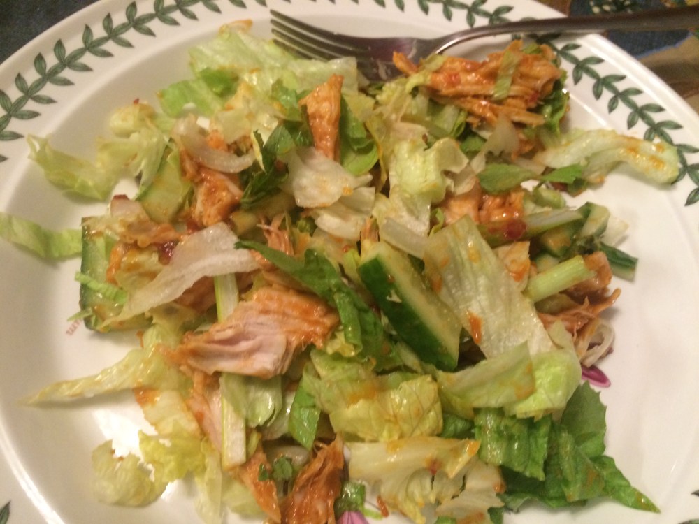 Day 2 of Thanksgiving Leftovers. Time for another light antidote to the Thanksgiving feast…a turkey salad…with an asian twist – Nigella Lawson’s Bang Bang Turkey.