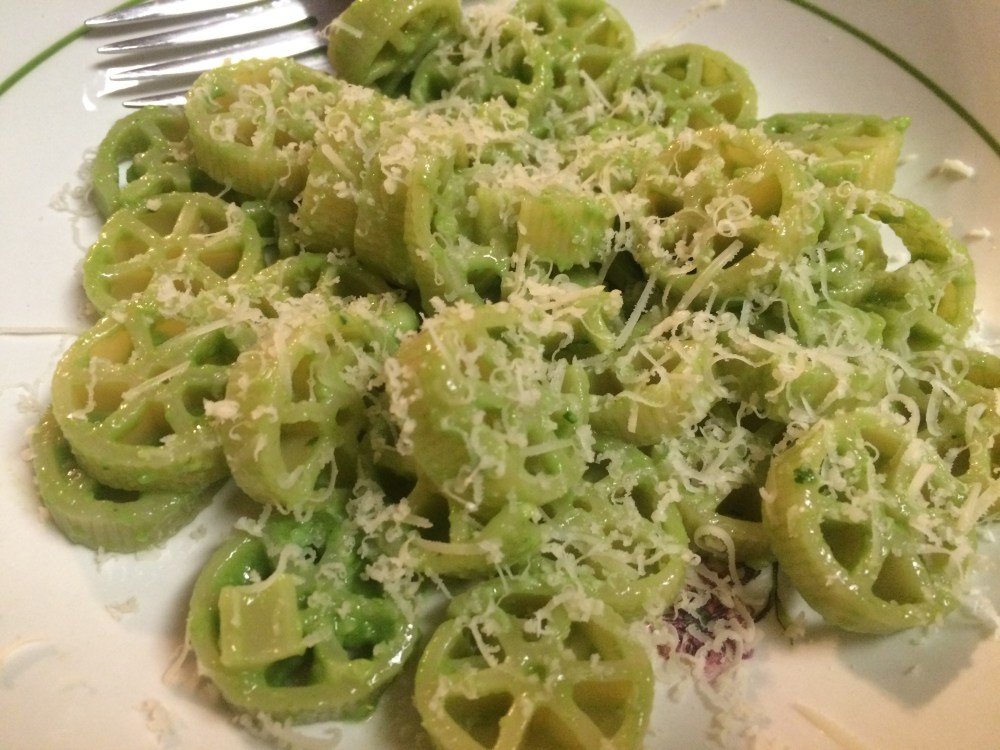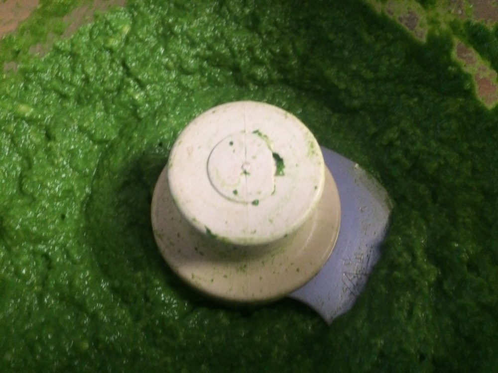 The color of the finished pesto had to make me smile – it looked more like guacamole than pesto (but it definitely tasted like pesto, not guac).