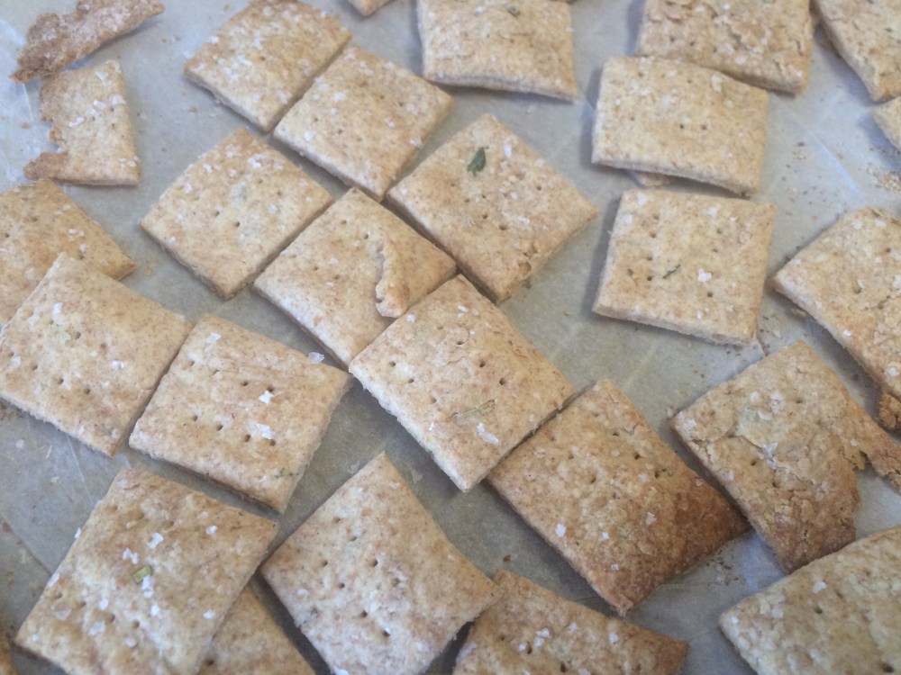 The recipe called for 2 Tbsp rosemary, I really cut that back to about 1 tsp and added 1 tsp dried thyme from my garden. It gave the crackers just a hint of herb, just right for us.