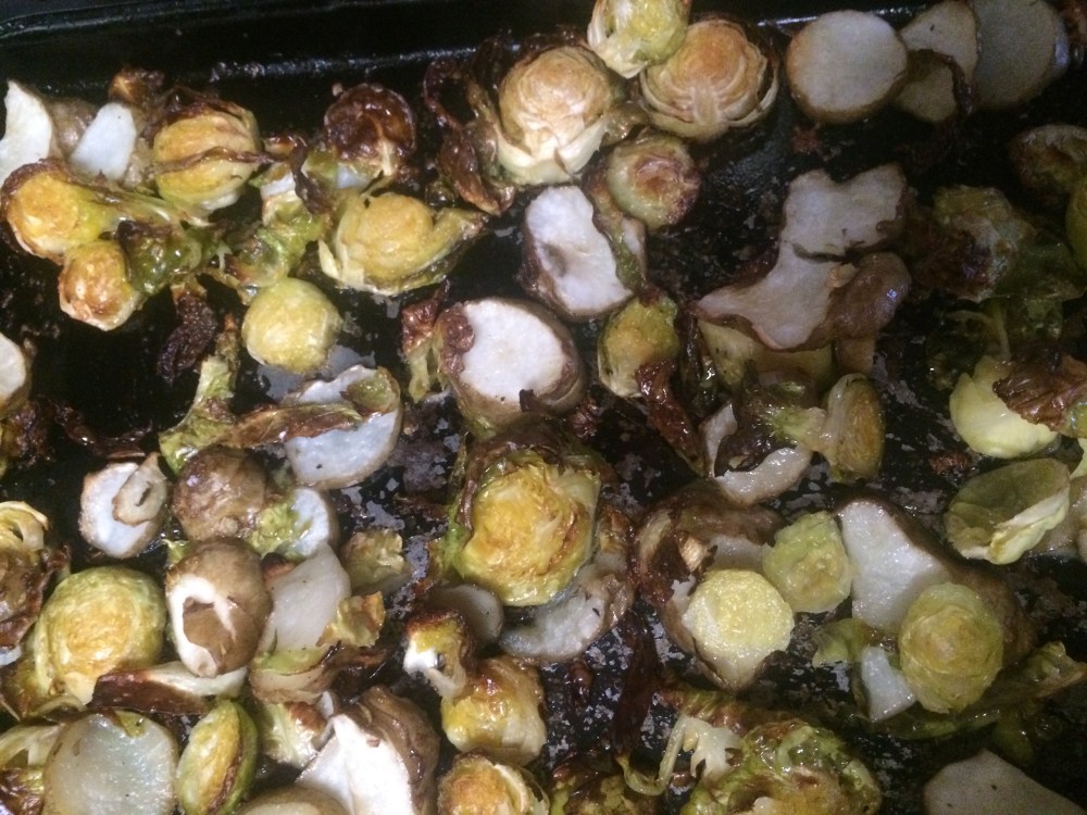 1/2 lb Brussels sprouts, sliced 1/4″ thick (from Highland Orchards)