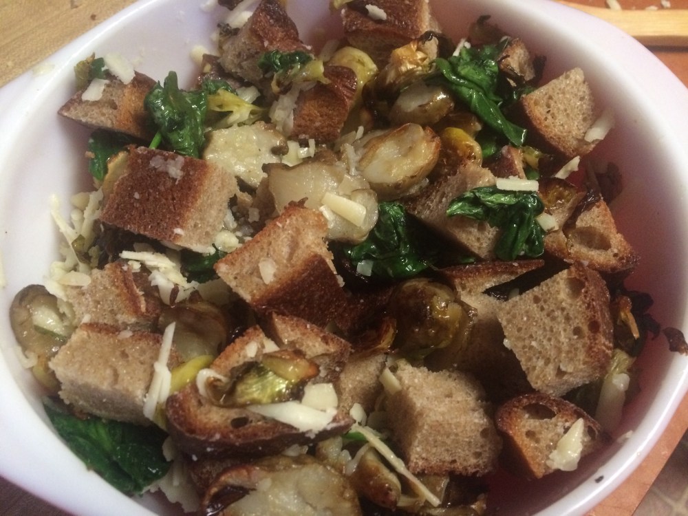 Roasted Winter Vegetable Strata (Jerusalem Artichokes, Brussels Sprouts & Spinach)